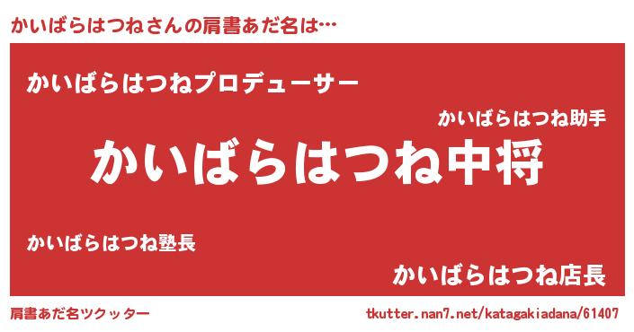 | ヒーロー風カッコイイあだ名 | 『スーパーカイバラハツネ』 |