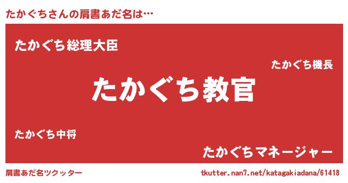 | ヒーロー風カッコイイあだ名 | 『仮面タカダー』『ウルトラたかぐちマン』 |
