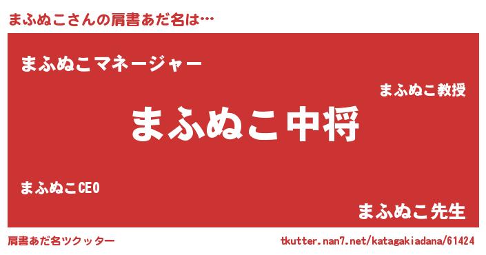 | ヒーロー風カッコイイあだ名 | 『ネオマフヌコ』『正義の使者まふぬこ』 |