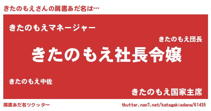 | ファンタジー風あだ名 | 『キタフェル』『エターナルキタノモエー』 |