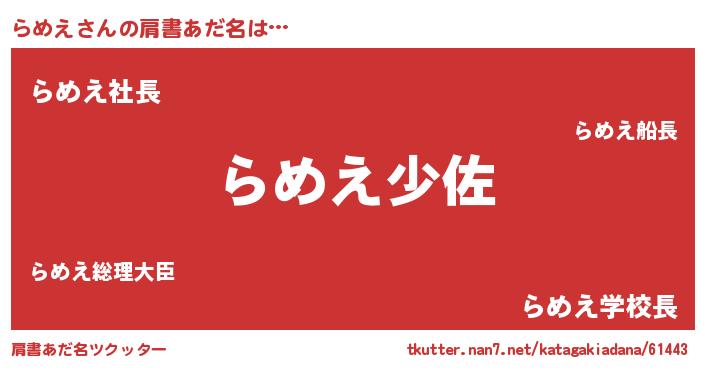 | ヘコむあだ名 | 『らめにー』『豆乳』『らめを』 |