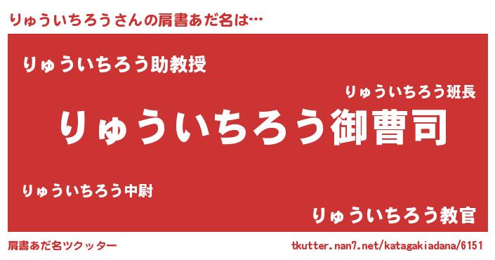 | 男性向けラノベタイトル風あだ名 | 『リュウイチロウアートオンライン』 |
