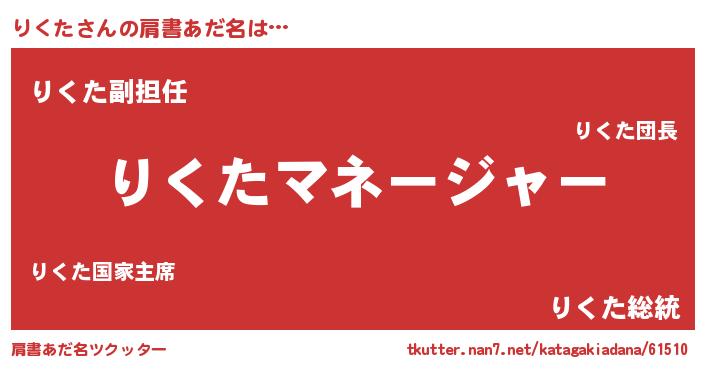 | 意味不明あだ名 | 『永久保存りくた』『自称りくた』 |