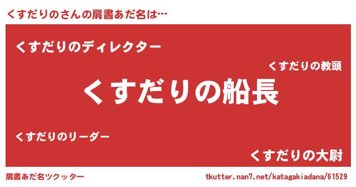 | 男性向けラノベタイトル風あだ名 | 『うちのくすだりのが世界を掌握している!』 |