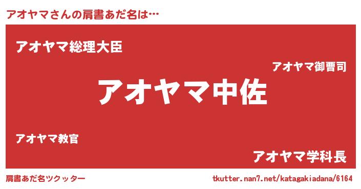 | 男性向けラノベタイトル風あだ名 | 『アオヤマスレイヤー』『アオヤマの憂鬱』 |