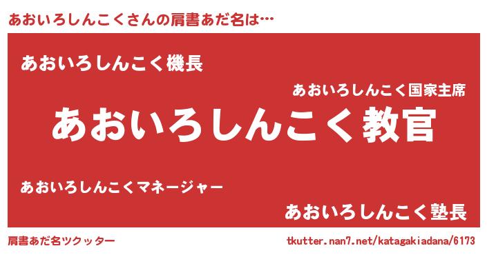 | 男性向けラノベタイトル風あだ名 | 『この素晴らしい世界にあおいろしんこくを!』 |