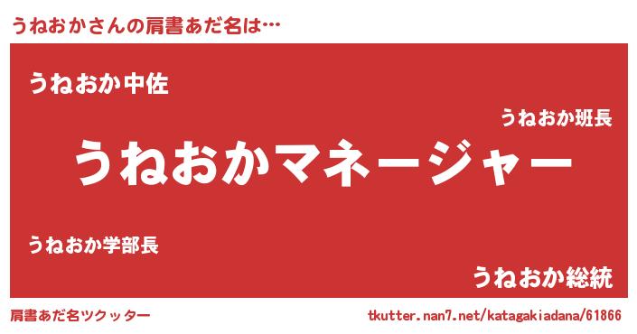 | 欧米人風あだ名 | 『アンジェラ・うねおか』 |