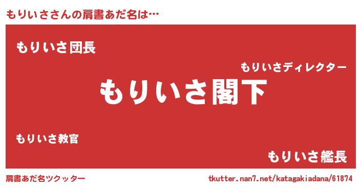 | 意味不明あだ名 | 『自称もりいさ』『もりいさフォーエバー』 |