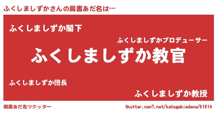| 意味不明あだ名 | 『住所不定無職ふくしましずか(68歳)』 |