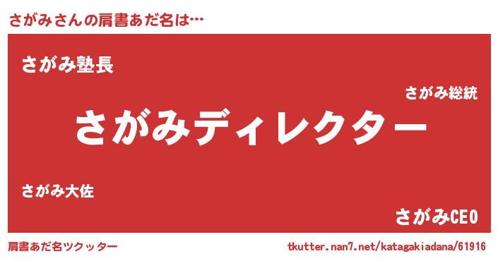 | 欧米人風あだ名 | 『アンジェラ・さがみ』『ウサインさがみ』 |