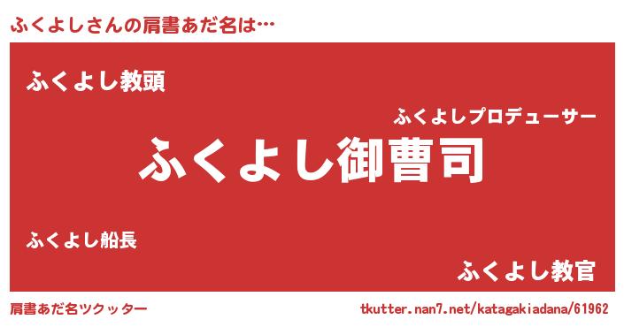 | 男性向けラノベタイトル風あだ名 | 『ふくよしの憂鬱』 |