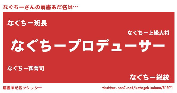 | 意味不明あだ名 | 『とにかく怪しいなぐちー』 |