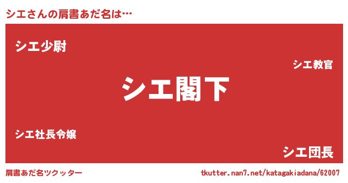 | ヘコむあだ名 | 『シエお』『シエふぇ~』『なまこ酢』 |