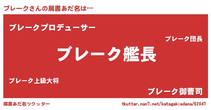 | 男性向けラノベタイトル風あだ名 | 『冴えないブレークの育てかた』 |