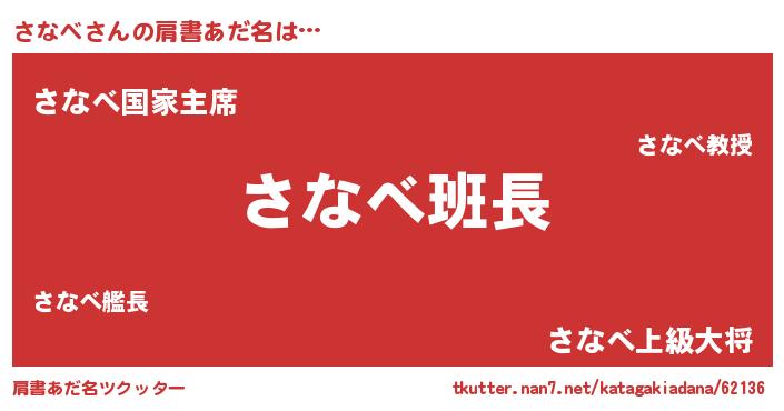 | ヒーロー風カッコイイあだ名 | 『炎刃騎士サナ』『ウルトラさなべマン』 |