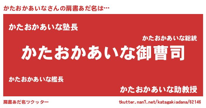 | 胡散臭い通販商品みたいなあだ名 | 『モテモテ間違いなし霊験あらたかなお札…その名も「かたおかあいな」』 |
