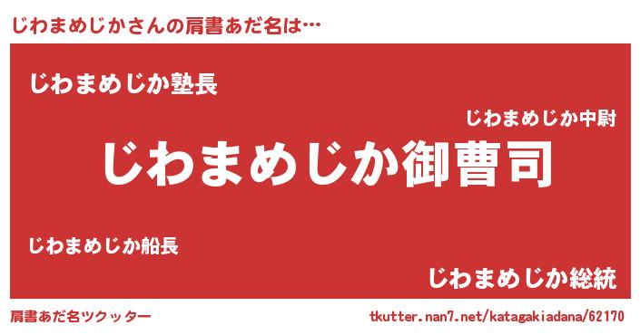 | 胡散臭い通販商品みたいなあだ名 | 『億万長者になれる霊験あらたかなお札…その名も「じわまめじか」』 |