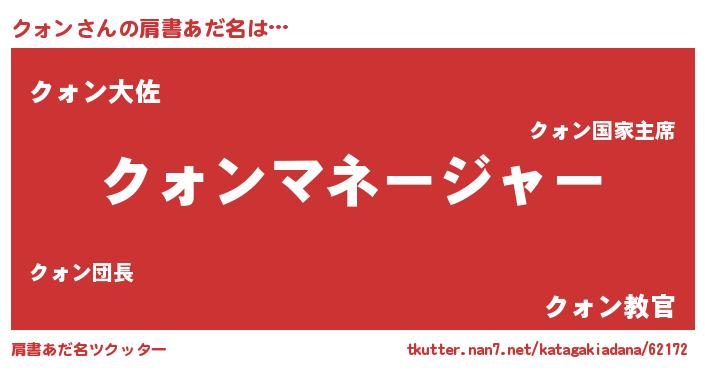 | 欧米人風あだ名 | 『アンジェラ・クォン』『ウサインクォン』 |