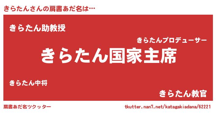 | 男性向けラノベタイトル風あだ名 | 『やはりきらたんの青春ラブコメはまちがっている 』 |