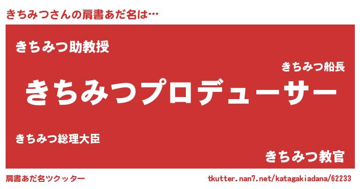 | ヘコむあだ名 | 『なまこ酢』『きちふぇ~』『きちお』 |