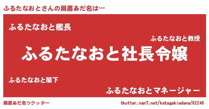 | 女子向けラノベタイトル風あだ名 | 『(仮)ふるたなおとのやんごとなき事情』 |