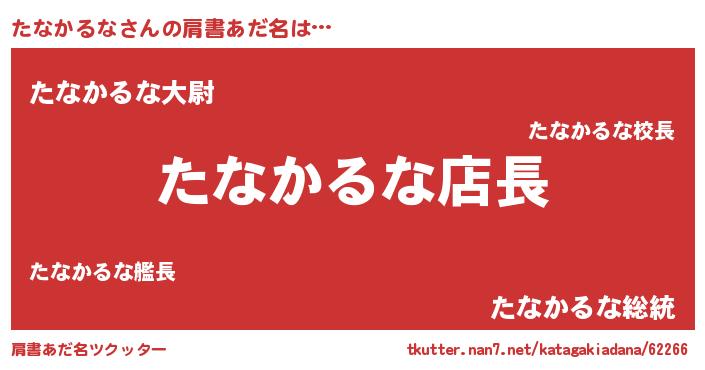 | 男性向けラノベタイトル風あだ名 | 『たなかるなの憂鬱』 |