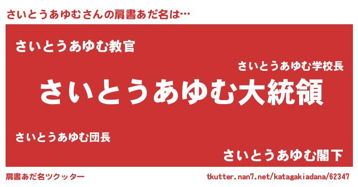 | ファンタジー風あだ名 | 『エターナルサイトウアユムー』 |