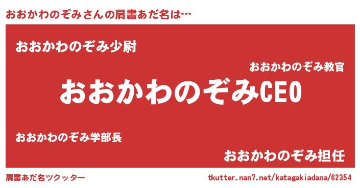 | 男性向けラノベタイトル風あだ名 | 『おおかわのぞみの憂鬱』 |