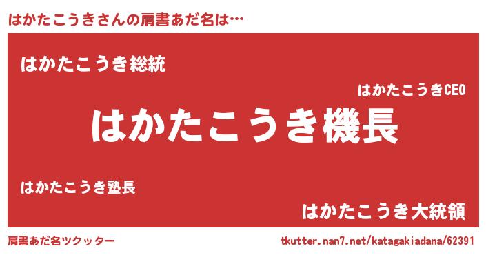 | 意味不明あだ名 | 『自称はかたこうき』 |