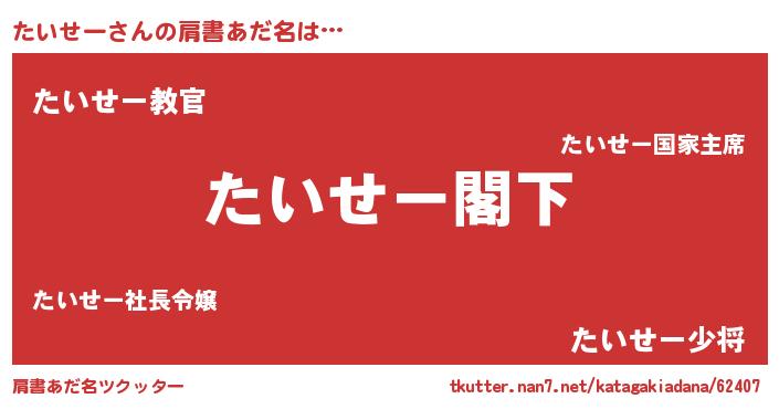 | 意味不明あだ名 | 『自称たいせー』『エリンギ科たいせー属』 |