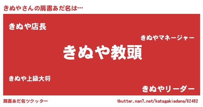 | 男性向けラノベタイトル風あだ名 | 『きぬやという概念が存在しない退屈な世界 』 |