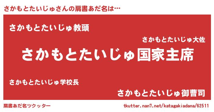 | 欧米人風あだ名 | 『さかもとたいじゅクリステル』 |