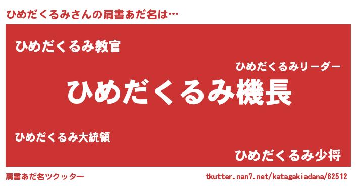| 男性向けラノベタイトル風あだ名 | 『緋弾のヒメダクルミ』 |
