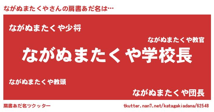 | 女子向けラノベタイトル風あだ名 | 『ながぬまたくや恋絵巻』 |