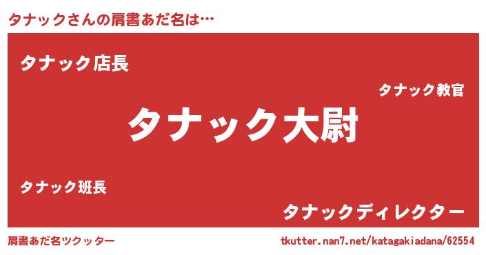 | ポケモン風あだ名 | 『タナキング』『タナチュウ』 |