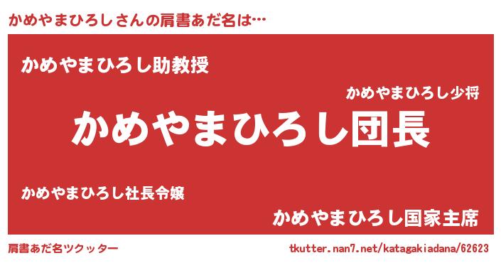 | 男性向けラノベタイトル風あだ名 | 『かめやまひろしの嫁は女の子じゃないと思った?』 |