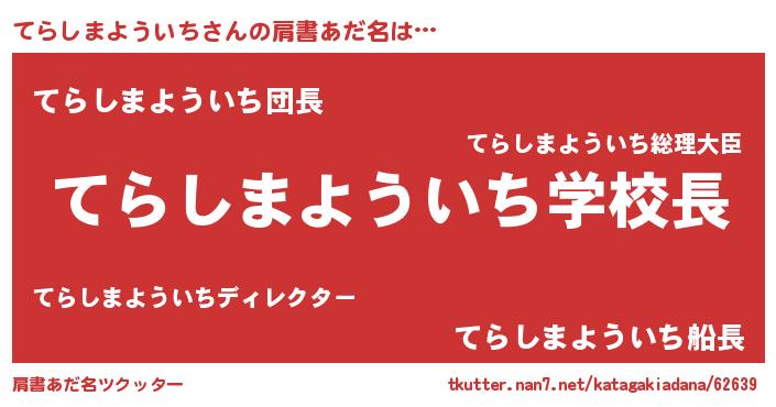 | 男性向けラノベタイトル風あだ名 | 『ノーゲーム・ノーテラシマヨウイチ』 |