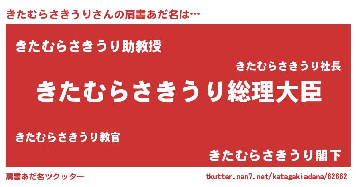 | 女子向けラノベタイトル風あだ名 | 『きたむらさきうりの雑貨屋さん』 |