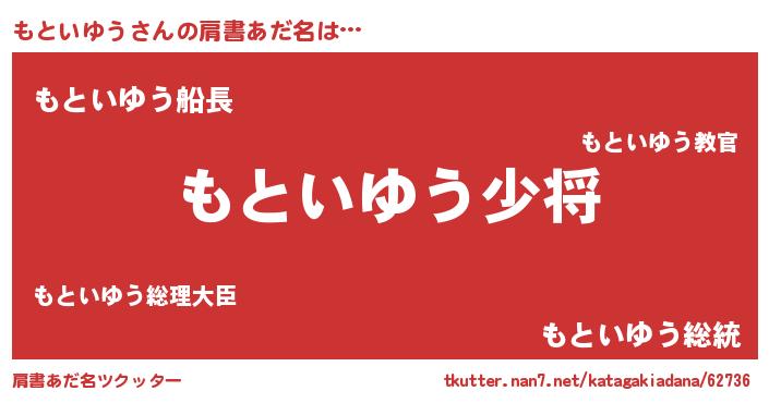 | 男性向けラノベタイトル風あだ名 | 『もといゆう~年齢イコール彼女いない歴の魔法使い~』 |