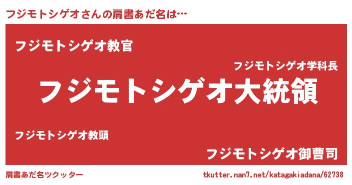 | 男性向けラノベタイトル風あだ名 | 『やはりフジモトシゲオの青春ラブコメはまちがっている 』 |