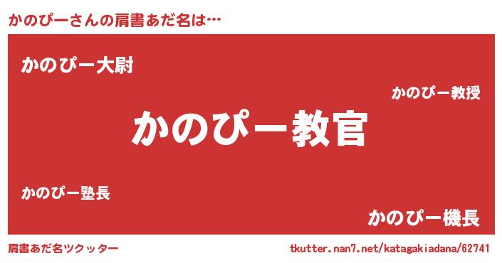 | ヒーロー風カッコイイあだ名 | 『仮面カノダー』『正義の使者かのぴー』 |