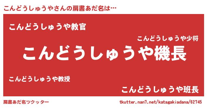 | 意味不明あだ名 | 『住所不定無職こんどうしゅうや(91歳)』 |
