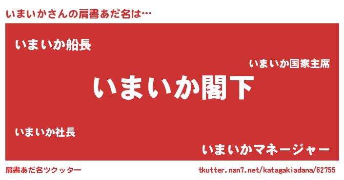 | 女子向けラノベタイトル風あだ名 | 『いまいかなんてお断りですっ。』 |