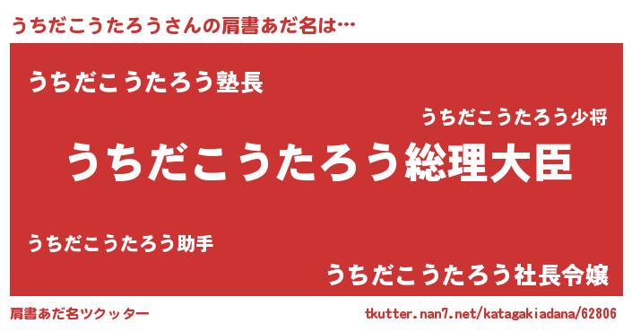 | 男性向けラノベタイトル風あだ名 | 『やはりうちだこうたろうの青春ラブコメはまちがっている 』 |