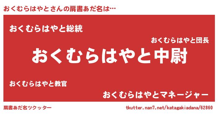 | 恥ずかしいあだ名 | 『オクムラハヤトデラックス』『おくちん』 |
