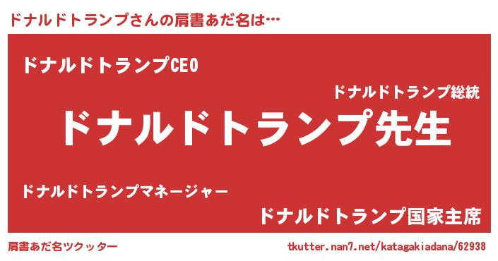 | 女子向けラノベタイトル風あだ名 | 『異世界で失敗しない100のドナルドトランプ』 |