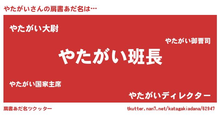 | ポケモン風あだ名 | 『ヒヤタガイ』『ヤタキング』 |