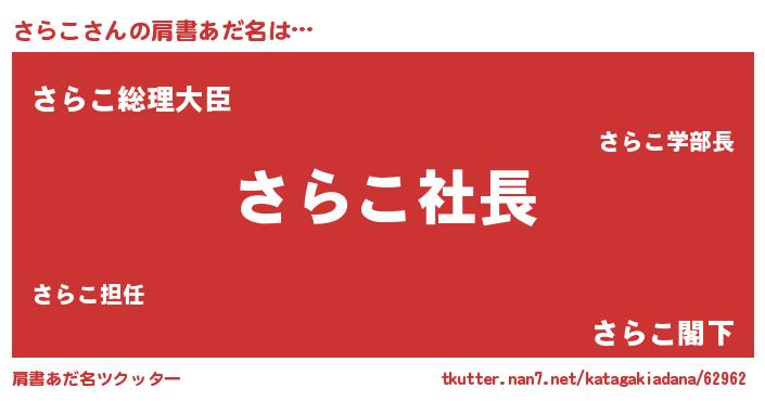 | ヒーロー風カッコイイあだ名 | 『スーパーサラコ』『ウルトラさらこマン』 |