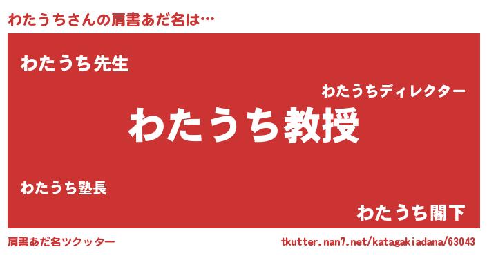 | ヘコむあだ名 | 『わたうち(小並感)』『わたお』 |