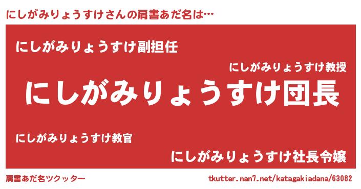 | ポケモン風あだ名 | 『ヒニシガミリョウスケ』『ゼニニシ』 |